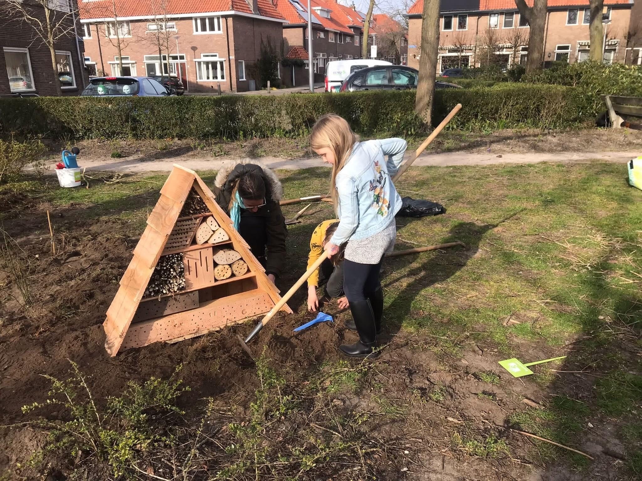 Als je op de kaart kijkt, dan begrijp je waarom bewoners het de gouden driehoek noemen: de hoek van de Leliestraat en Molenweg. Daar staat nu een insectenhotel. En om insecten te lokken plantten de bewoners een aantal fruitstruiken. Daar blijft het niet bij, want de plannen voor verdere vergroening van de buurt zijn al gemaakt.