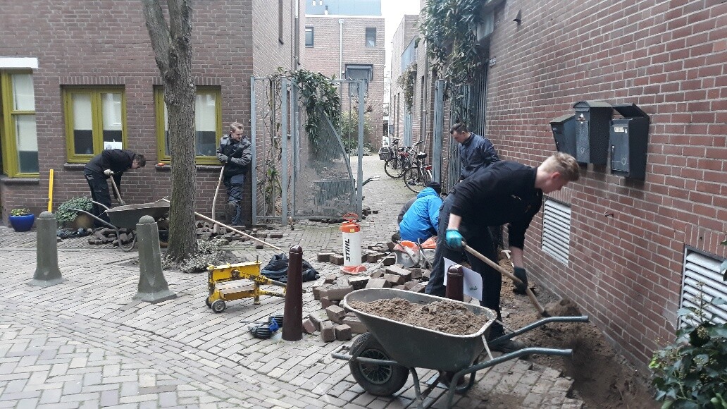 De duimen gingen in maart 2020 omhoog want de klus was geklaard. Bewoners, studenten van Green Projects en wijkbeheerder Jurrien Stroomberg hebben geveltuintjes in de Waterstraat aangelegd.