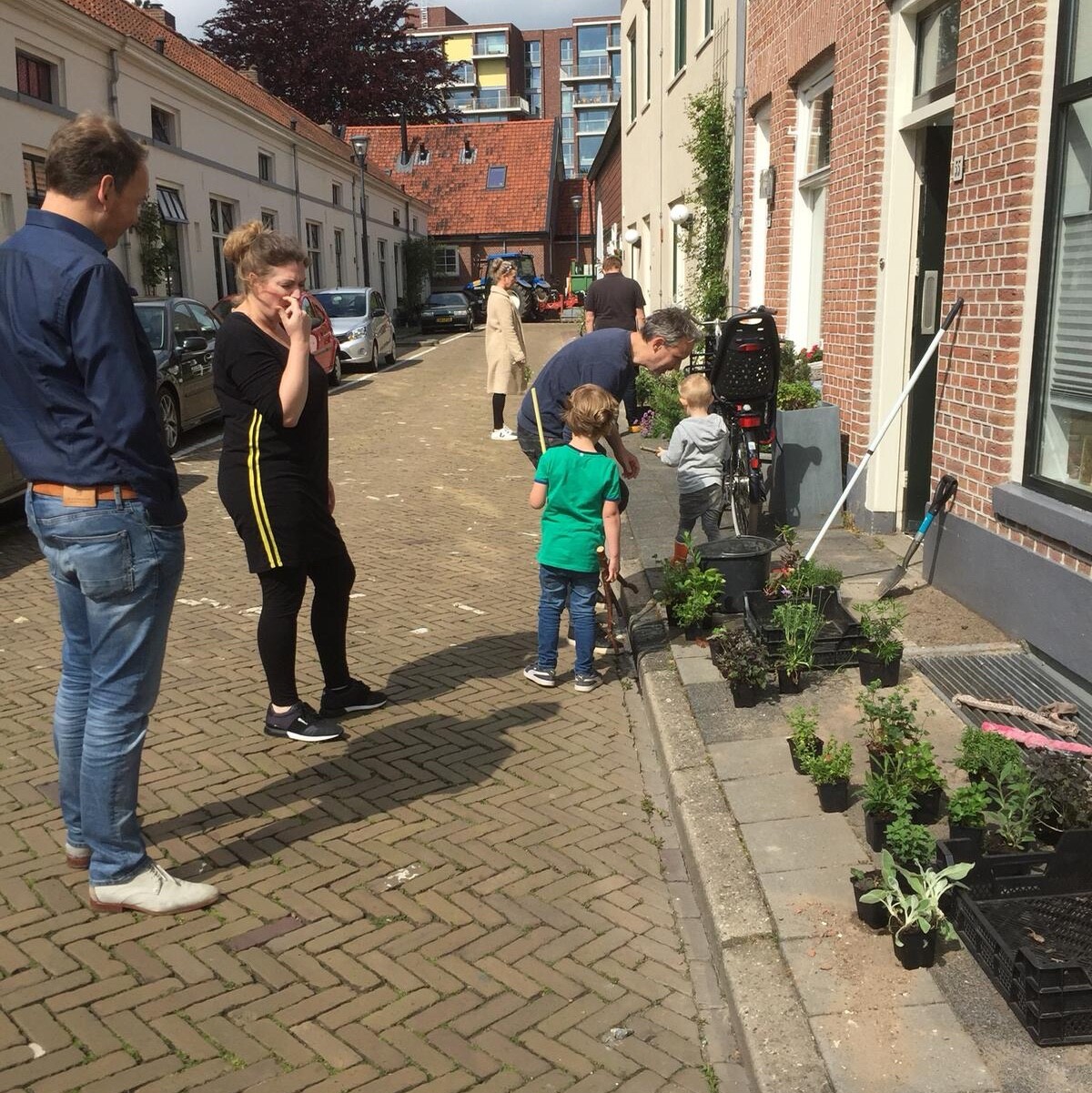 Jurrien: “De Eekwal heeft smalle stoepen. Eigenlijk kun je dan geen geveltuintjes maken, omdat dat de doorgang voor rolstoelers en wandelwagens belemmert. We moeten ook rekening houden met kabels en leidingen in de grond. Daarom is het belangrijk dat bewoners eerst contact leggen met de wijkbeheerder. De Eekwal is geen doorgaande straat. Je komt er alleen als je er woont. Daarom ben ik akkoord gegaan met het aanleggen van geveltuintjes. Bovendien: die tuintjes staan niet alleen leuk, het voert ook gemakkelijker overtollig regenwater af en het trekt insecten en vogels aan.“