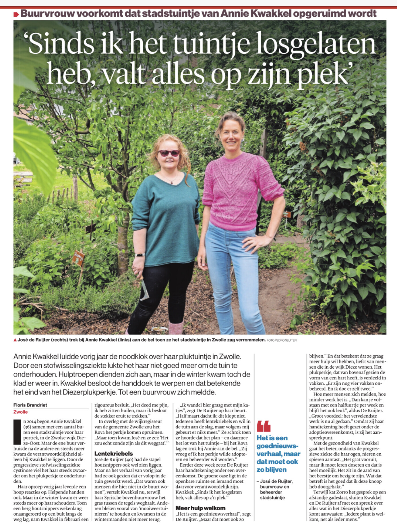 Aan het Simon van Slingelandtplein in Dieze-oost ligt de Diezerpluktuin. Een oud bewonersinitiatief die door verhuizingen van de initiatiefnemers in verval raakte. Eén bewoner maakte zich hier hard voor maar kon in haar eentje onmogelijk deze grote bijzondere tuin onderhouden. Er is veel gedaan aan hget enthousiasmeren van buren om aan te sluiten bij het initiatief. Een artikel in De Stentor bracht wel beweging maar niet van mensen uit Dieze-oost. De tuin moest opgegeven worden en daarmee kwam dit groen weer in beheer van de gemeente. Wat betekende dat een groot deel van de tuin ontmanteld zou worden. Toen dat dreigde,  ontstond er een beweging in de buurt. Door een impuls is de tuin weer een bloeiende, gezellige plek waar buren elkaar ontmoeten, kinderen door de tuin scharrelen en gewerkt wordt aan een biodivers groen in de directe woonomgeving.