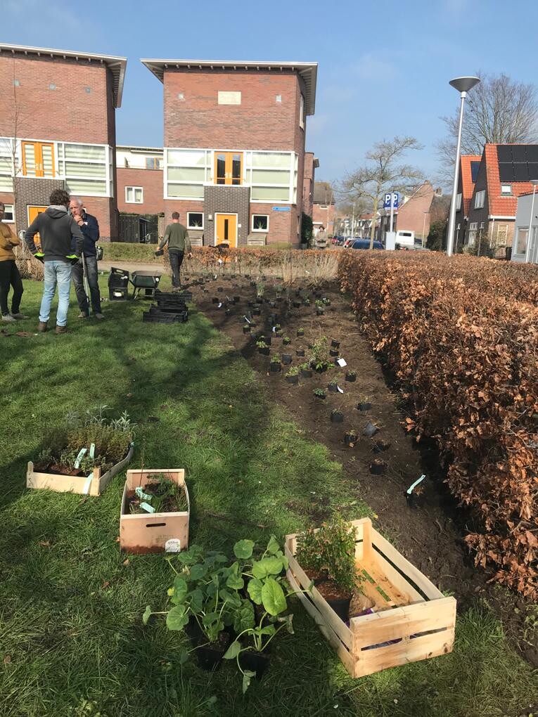 Het Sint Josephplein is een groen hart, waar oude bomen in het gras staan en onlangs een oorlogsmonument onthuld is. De huidige groene inrichting met ijzeren hekwerk nodigt niet uit tot gebruik. Daarom zijn bewoners van het plein en aanliggende straten na gaan denken over een andere inrichting. Het plan is klaar en tijdens NL Doet 2020 is een start gemaakt met de aanleg. In plaats van gras vind je hier bessenstruiken, kruiden en bloeiende planten.