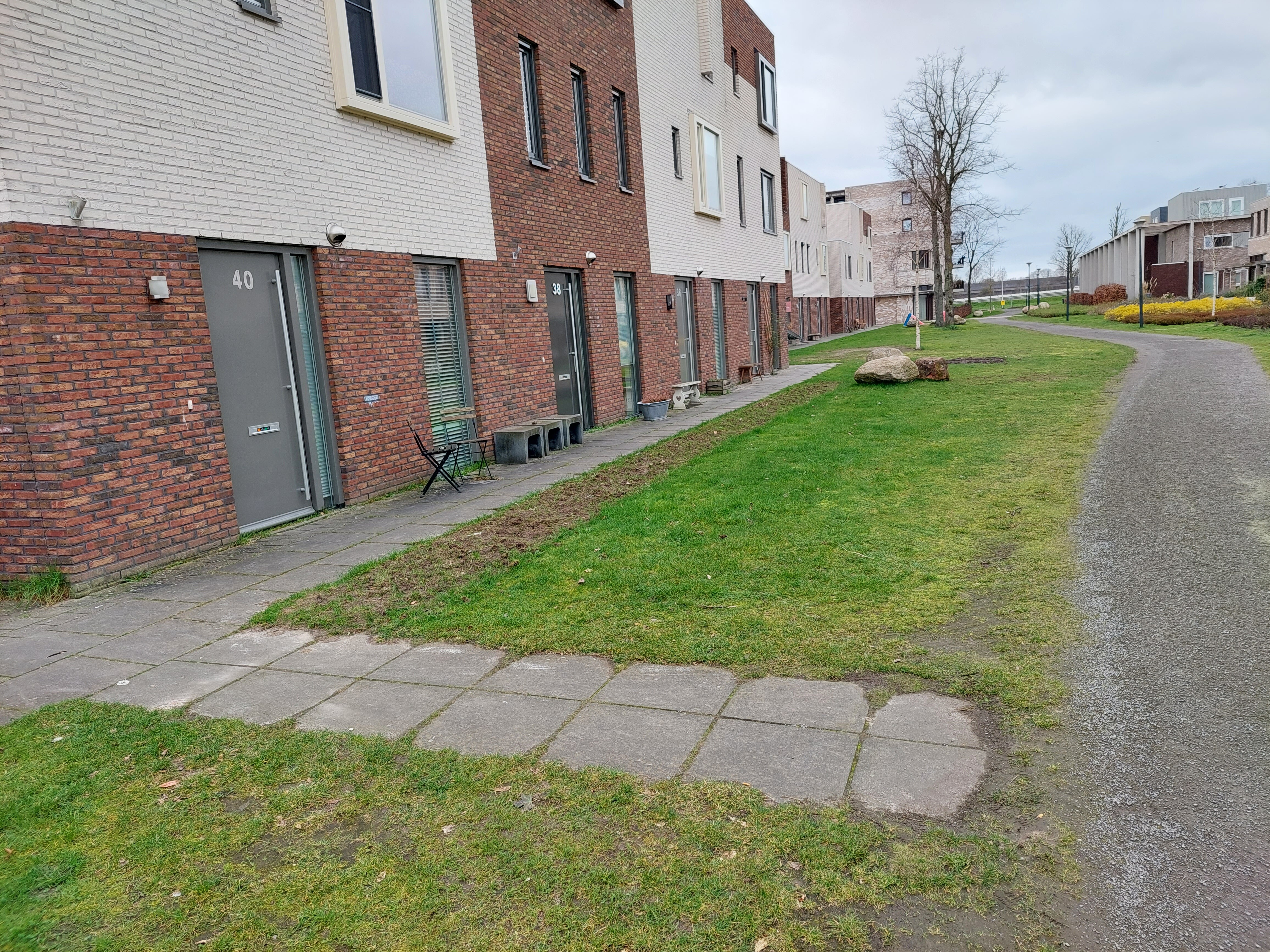 We zouden graag één of twee natuurlijk speelelementen in het gras zien en mogelijk een picknicktafel.