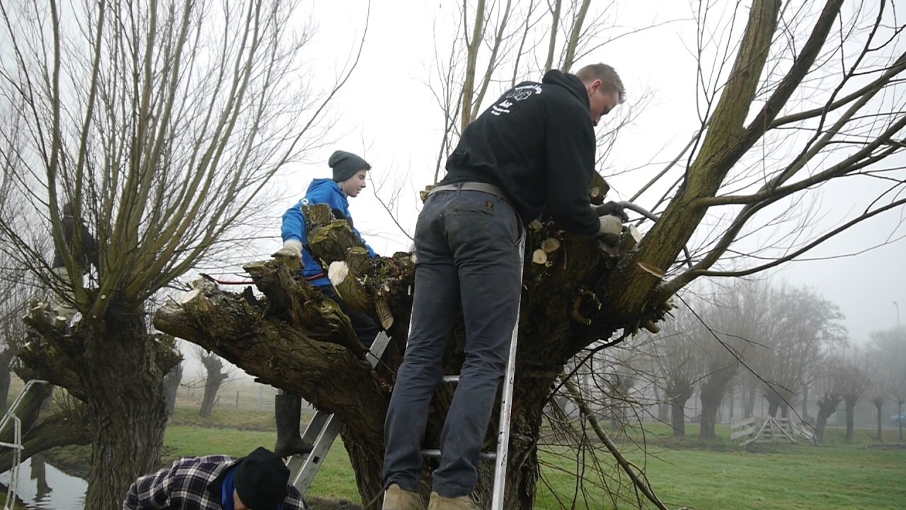 Bewoners knottten hier zelf een twaalftal wilgen in het doodlopende deel van de straat richting de Hanselaarmate.