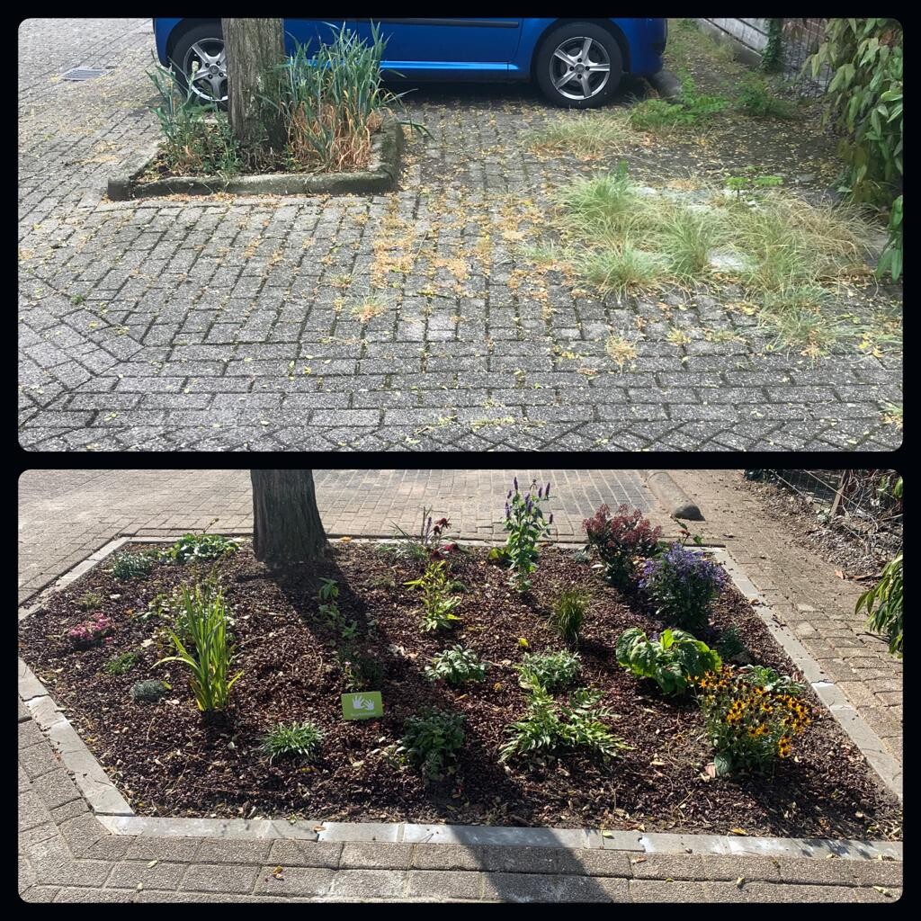 Het lijkt ons een tof idee om de bestaande boomspiegel,ย op de hoek Weerschijnvlinder / IJsvogelvlinder,ย te vergroten en datย wij hier, samen met de buurt, kunnen bijdragen aan meerย groen voor ๐ฆenย ๐ in de straat.