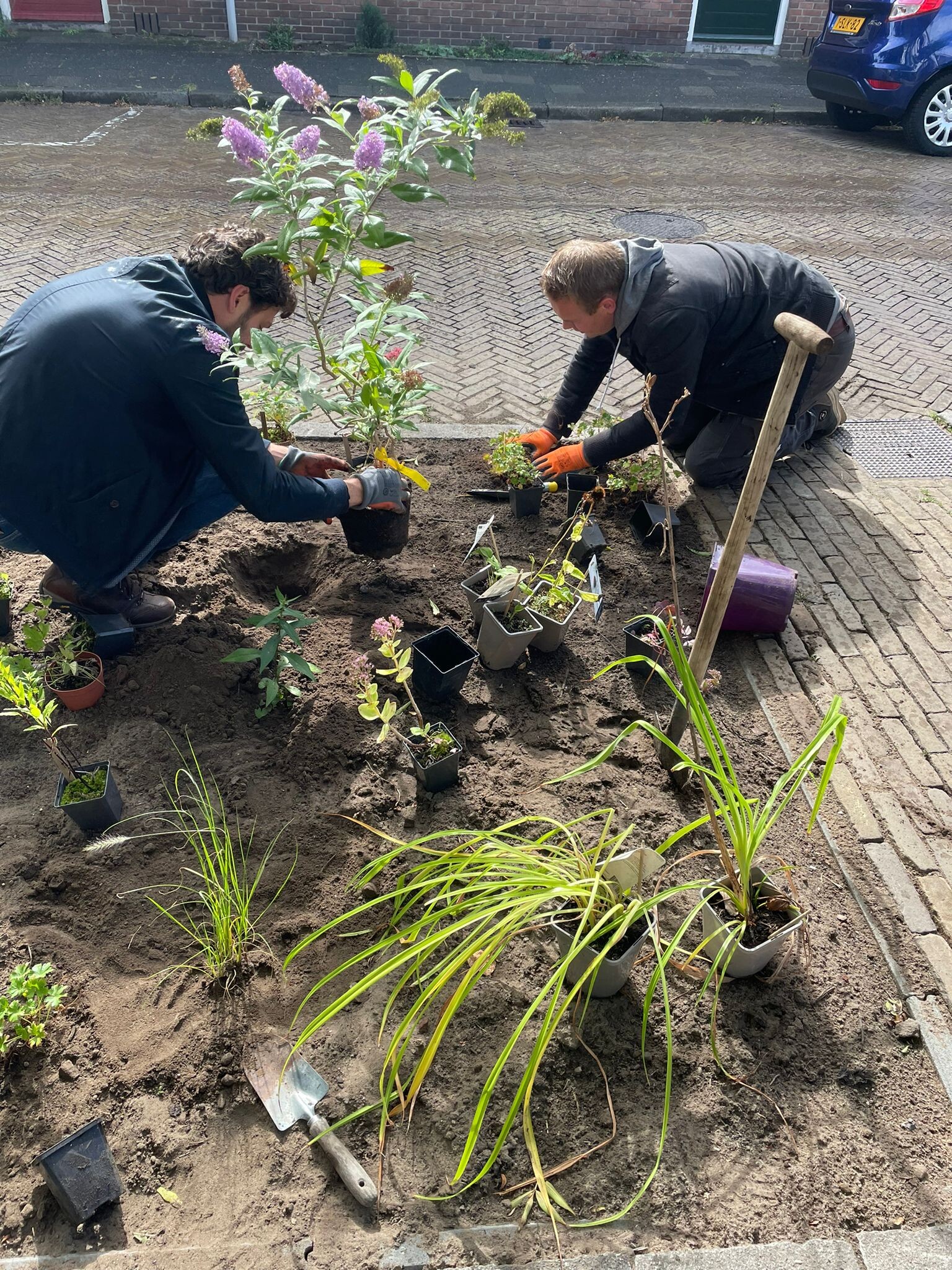 4 boomspiegels zijn vergroot en/of aangelegd. Daarna hebben we met alle bewoners rondom het plantsoen de beplanting er in gezet. Natuurlijk afgewisseld met koffie en thee met iets lekkers. En 's avonds als afsluiting een BBQ. 's middags hebben de kinderen een rommelmarktje gehouden waarvoor ze in de hele buurt geflyerd hadden.