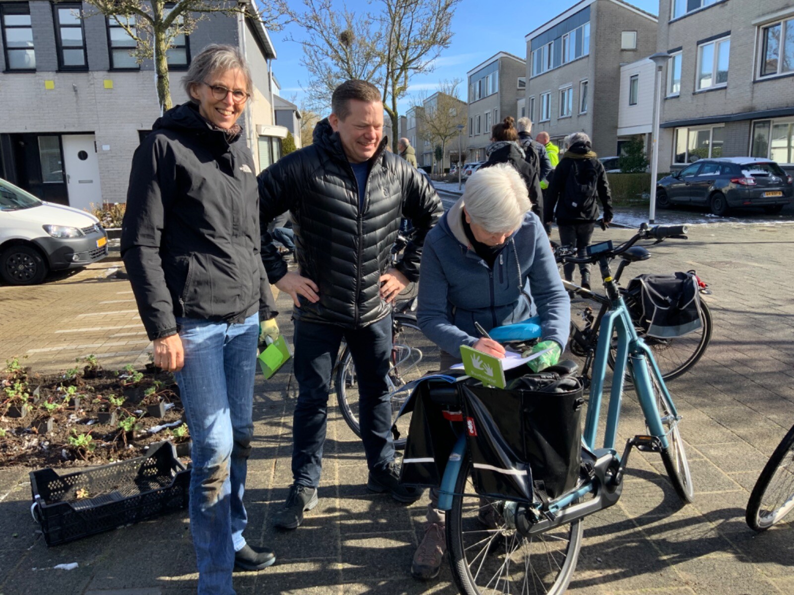 rondom de bomen aan de klompestraat boomtuintjes realiseren.