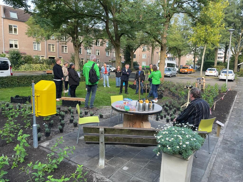 Openbaar stukje groen ombouwen naar een gezellige ontmoetingsplek en waardevol groen/bloemen toevoegen