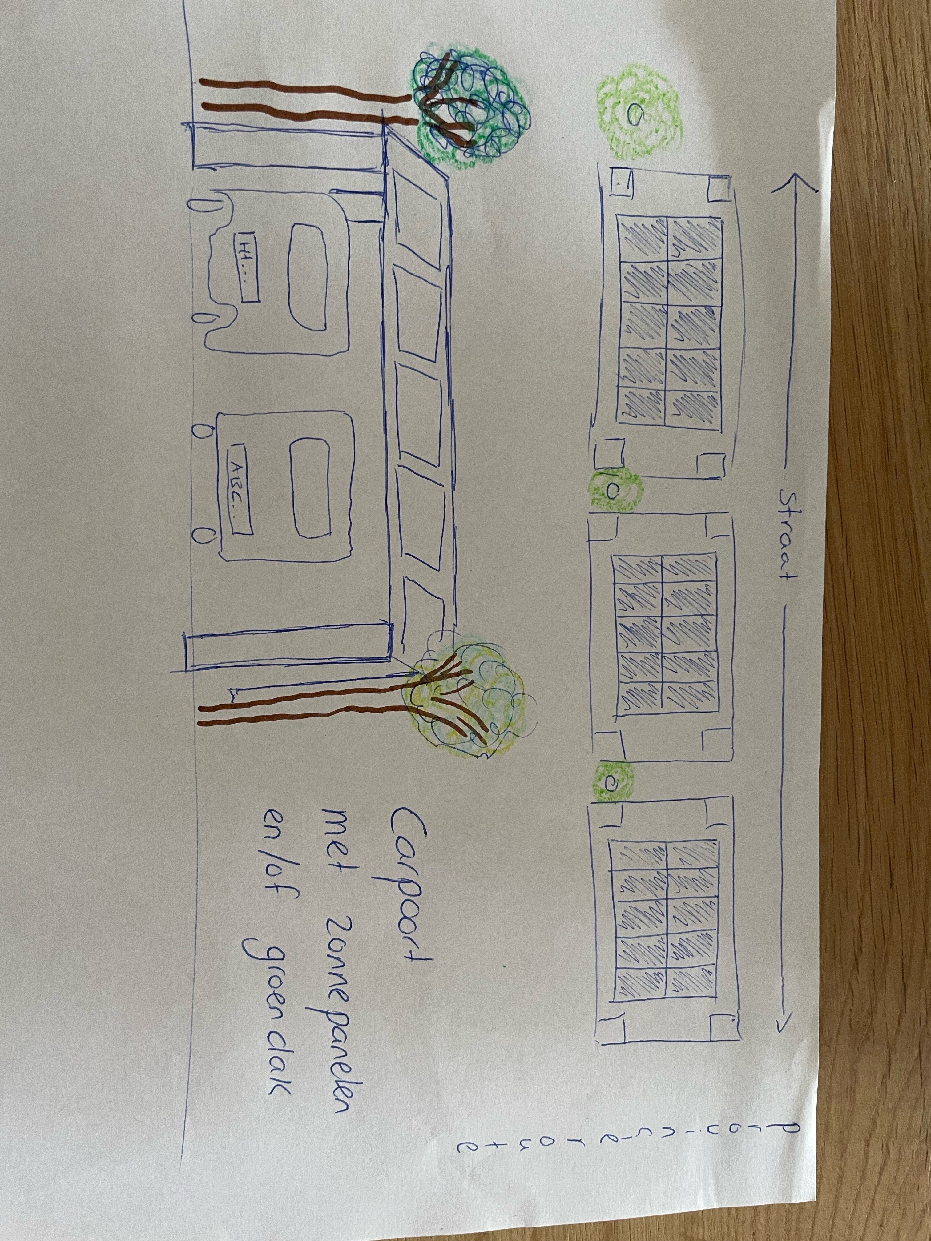 Overdek de parkeerplaatsen met een carpoort, niet zomaar een carpoort, maar eentje met een groendak en/of zonnepanelen. Zo staat je auto droog, schoon, warmt niet op, niet krabben + dragen we bij aan de biodiversiteit en energie armoede. Een win-win-win. Misschien is het zelfs mogelijk om de energie te gebruiken voor een elektrische laadpaal. De carpoort ligt ideaal op het zuiden.