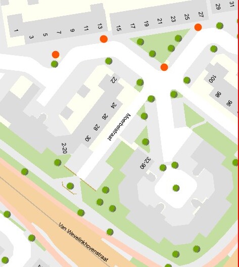 Het idee is om op 4 lantaarnpalen (nummers 4, 6, 7 en 16) een bloembak te monteren. Dat zijn de lantaarnpalen voor Moerbeistraat: