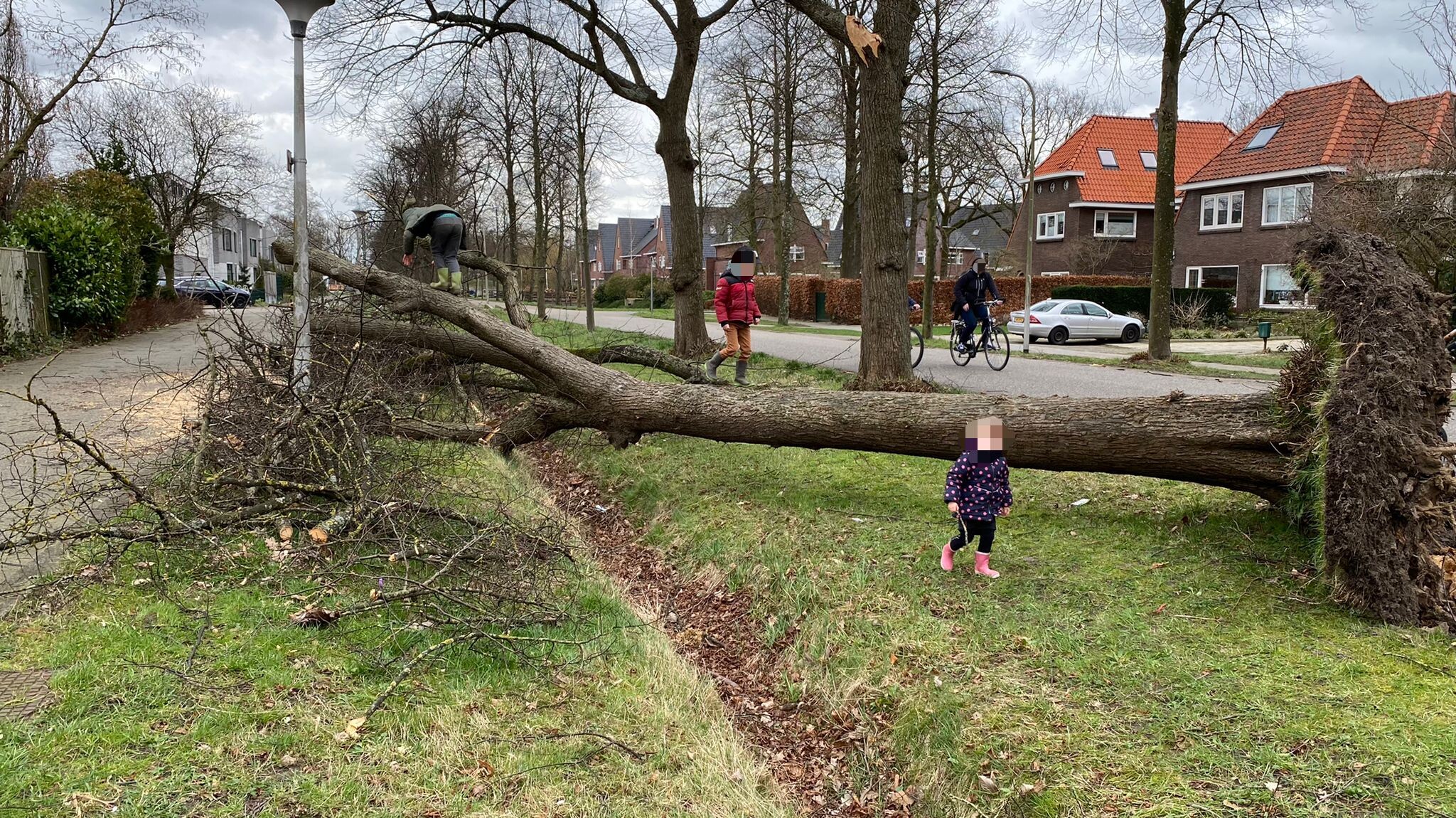 Aan de Grenslaan bleek een gigantische boom niet bestand tegen de krachten van storm Eunice. Zonde... maar voor veel kinderen een nieuw avontuur.