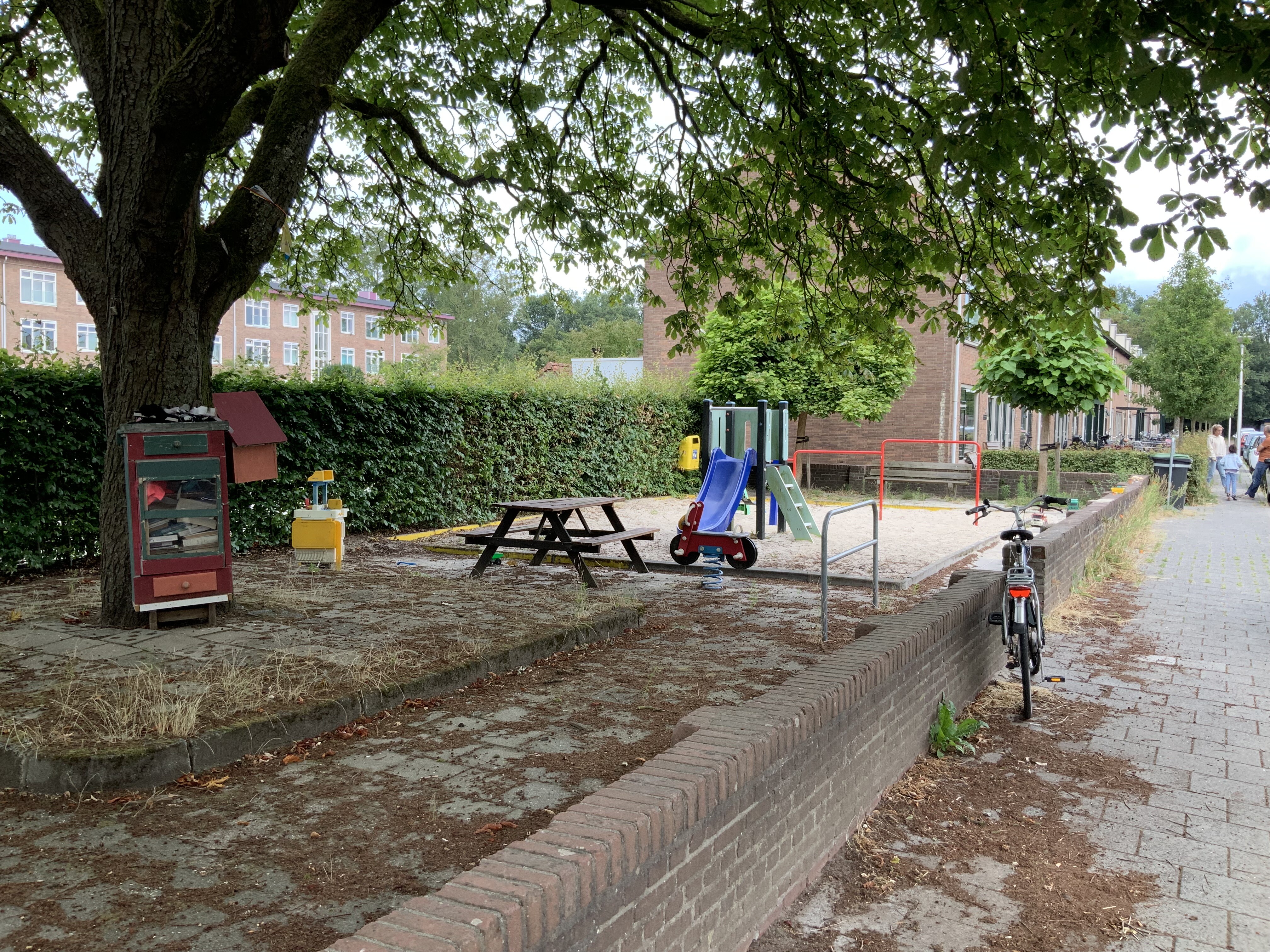 De speeltuin is in eigen beheer maar kan wel een opfrisbeurt gebruiken. De speeltuin is een kattenbak geworden en de toestellen worden niet gecontroleerd. De kastanjeboom zorgt voor veel bladafval het hele jaar door. We willen graag dat de speeltuin een leuke plek wordt om te spelen en te ontmoeten.