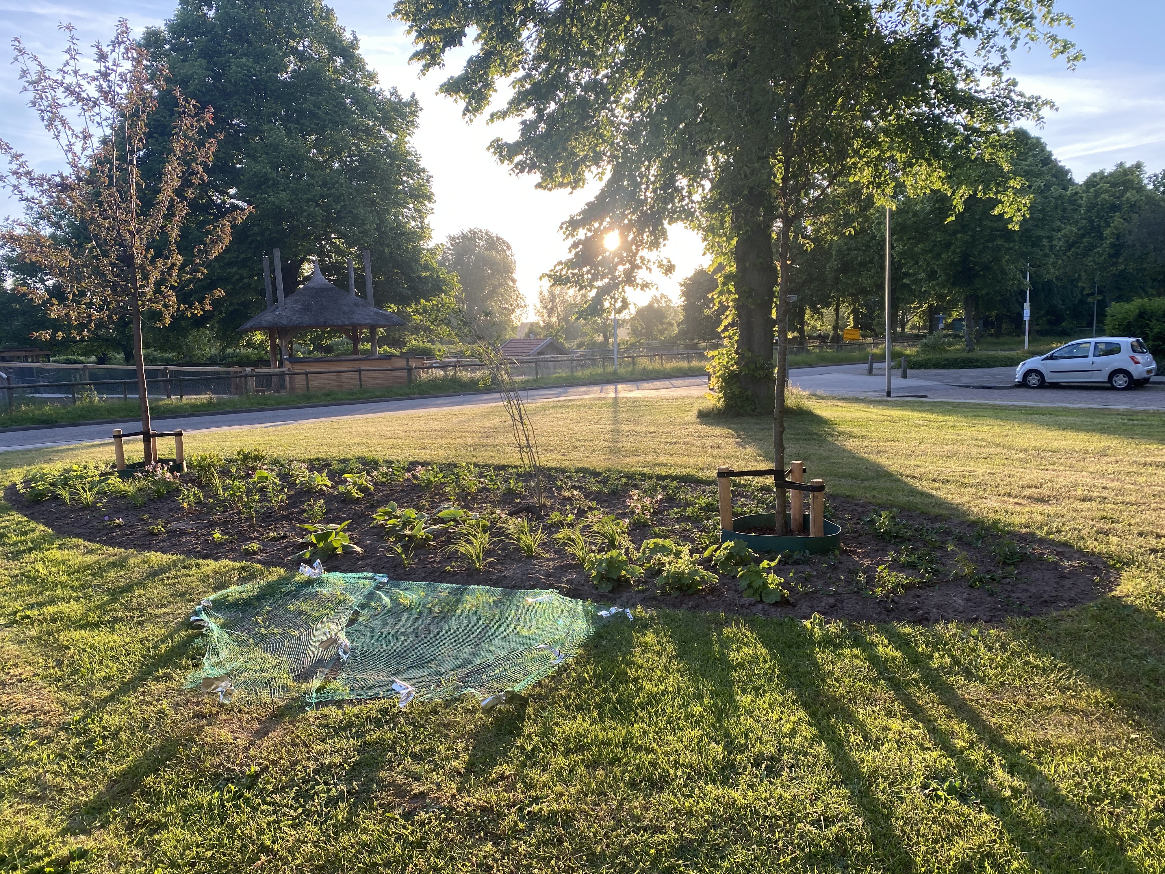 Sinds januari 2022 wonen mijn vrouw en ik in een appartement op de 3e etage tegenover de Klooienberg boerderij. Het appartement heeft een prachtig uitzicht over bomen, boerderij en het Zwarte water. We zijn rondom voorzien van Amerikaanse linden en eikebomen. Voor het appartement ligt een stuk groenstrook waarvan we zagen dat daar zo nu en dan bestelbusjes overheen rijden.Daarom de vraag aan ROVA of zij hier een oplossing voor hadden. De medewerker verwees ons naar De Bomenman. Via Google kwamen we terecht bij Dennis Noordman, Operationeel beheerder van de openbare ruimte Zwolle.Naar aanleiding van onze brief werd een persoonlijk bezoek gepland waarin we o.a.ook bespraken het initiatief van de bewoners om de hoek aan de Handellaan waar collectief inoverleg met de Gemeente een beplantingsplan was gerealiseerd. Ons initiatief vond de heer Noordman erg leuk omdat dit de woonomgeving verbeterd. Hij zou met zijn manager overleggen.Het resultaat was dat Mw Andre Freund, groen en wijk adviseur en Robert Jansen, wijkregisseur in dit stadsdeel met een prachtig plan kwamen.En tevens dat de Stichting SWZ dit plan met enthousiasme wilde ondersteunen. Het plan werd bij ons thuis besproken en wij zouden dit fraaie plan/voorstel mogen adopteren met eigen inbreng.Gelukkig zijn er nog 2 andere bewoners uit het apprtementen complex bereid gevonden om mee te doen. Het gaat om het realiseren van een beplantingsvak van ongeveer 10 meter bij 4 a 5 meter. Op de hoeken van het beplantingsvak worden dan 2 middelgrote boompjes geplaatst, Sierkers en Sierappel die bloeien respectievelijk in november, februari en april,mei. De ovrige lagere begroeiing zijn een aantal groenblijvende heesters en vaste planten die voor een kleurrijk geheel zorgen. Wij zijn er super trots op dat De Gemeente de bewoners hier op deze wijze bij wil betrekken. Op vrijdag 10 maart a.s.op Nederland Doe dag, mogen we de Rova meehelpen de planten te plaatsen.