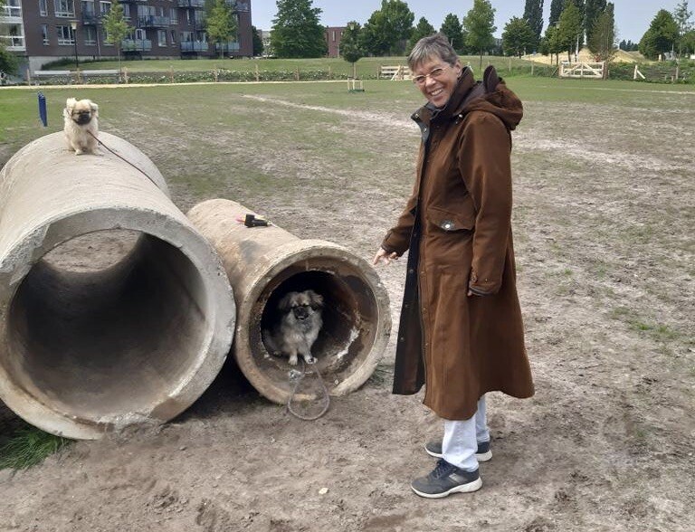 Wijkbeheerder bij de gemeente Zwolle Marjolein Geurtsen is blij met de inzet van deze hondenbezitters: “In Zwolle geldt een aanlijnplicht behalve op speciale hondenlosplekken. Nu Stadshagen nog steeds uitbreidt was er behoefte aan een extra terrein bij de Milligerplas. Tijdens het maken van de plannen voor een hondenlosterrein kregen we de vraag om speelmateriaal. Een collega is toen samen met Patrick gaan kijken bij de opslag van de gemeente. Daar lagen rioolbuizen en Amsterdammertjes die voor dit doel prima geschikt zijn. Je kunt duur materiaal aanschaffen, maar voor een hond maakt dat niets uit. “