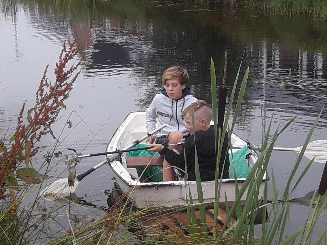 Twee broertjes stapten op een miezerig dag in hun bootje. “Er lag veel afval tussen het riet en dat is vanaf de kant niet te pakken. Met knijpers van de gemeente lukte het deze jongens met hun bootje wel.”