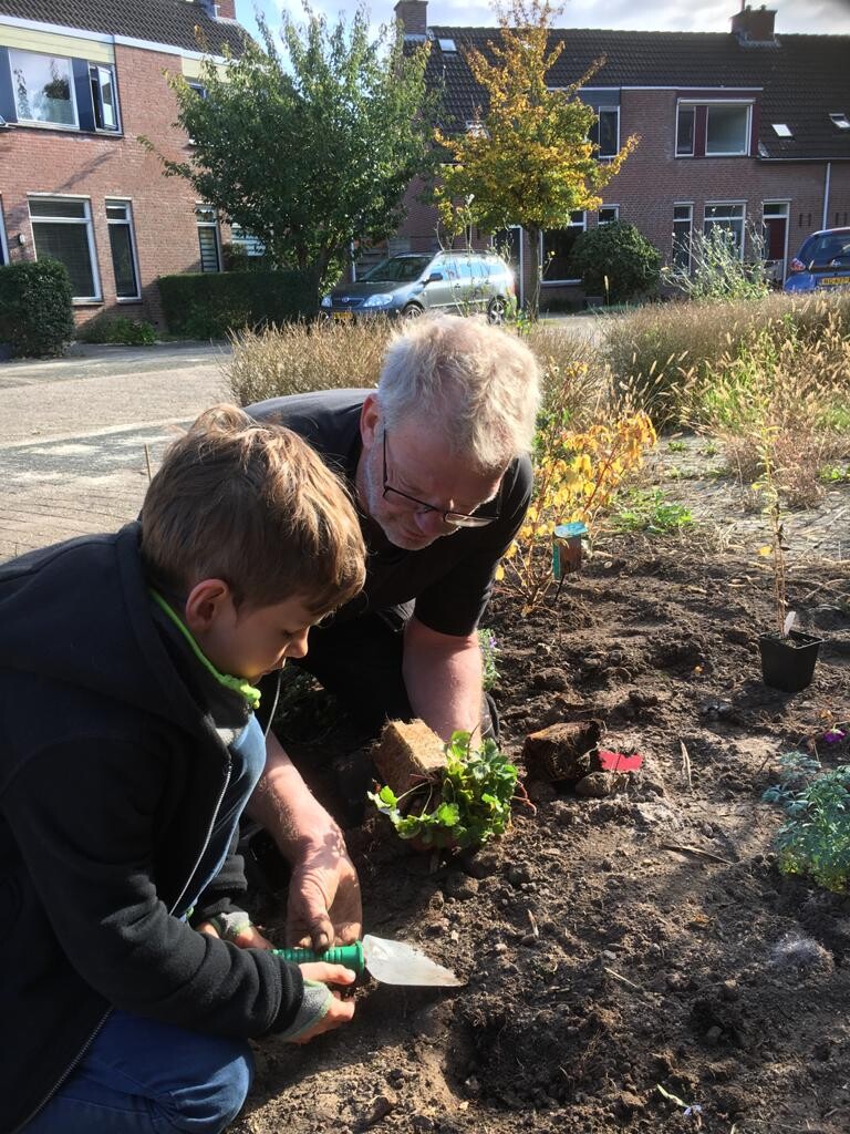 In de Knoopkruidweg hebben we in het voorjaar van 2021 de oprit van de straat vergroend. Langs de schuttingen en in een dooie hoek hebben we de stenen gelicht en er bloemen en struiken in geplant; kiwibessen, zonnehoedjes, stokrozen, zonnebloemen en pompoenen en bosaardbeitjes voor de kinderen. Binnenkort gaan we de eerste soep koken van de pompoenen! .