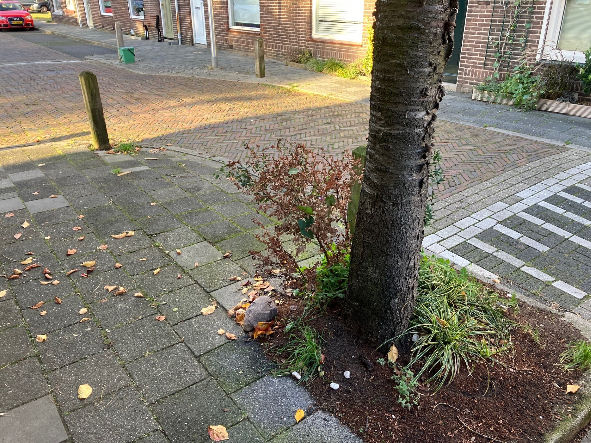 Wij willen graag onze kruising vergroenen door op 2 plekken tegels eruit te halen en te vervangen door plantvakken (zie foto's). Daarnaast zouden we ook graag willen kijken naar het vak waar momenteel een boom in staat, ook deze kan een opknapbeurt gebruiken.