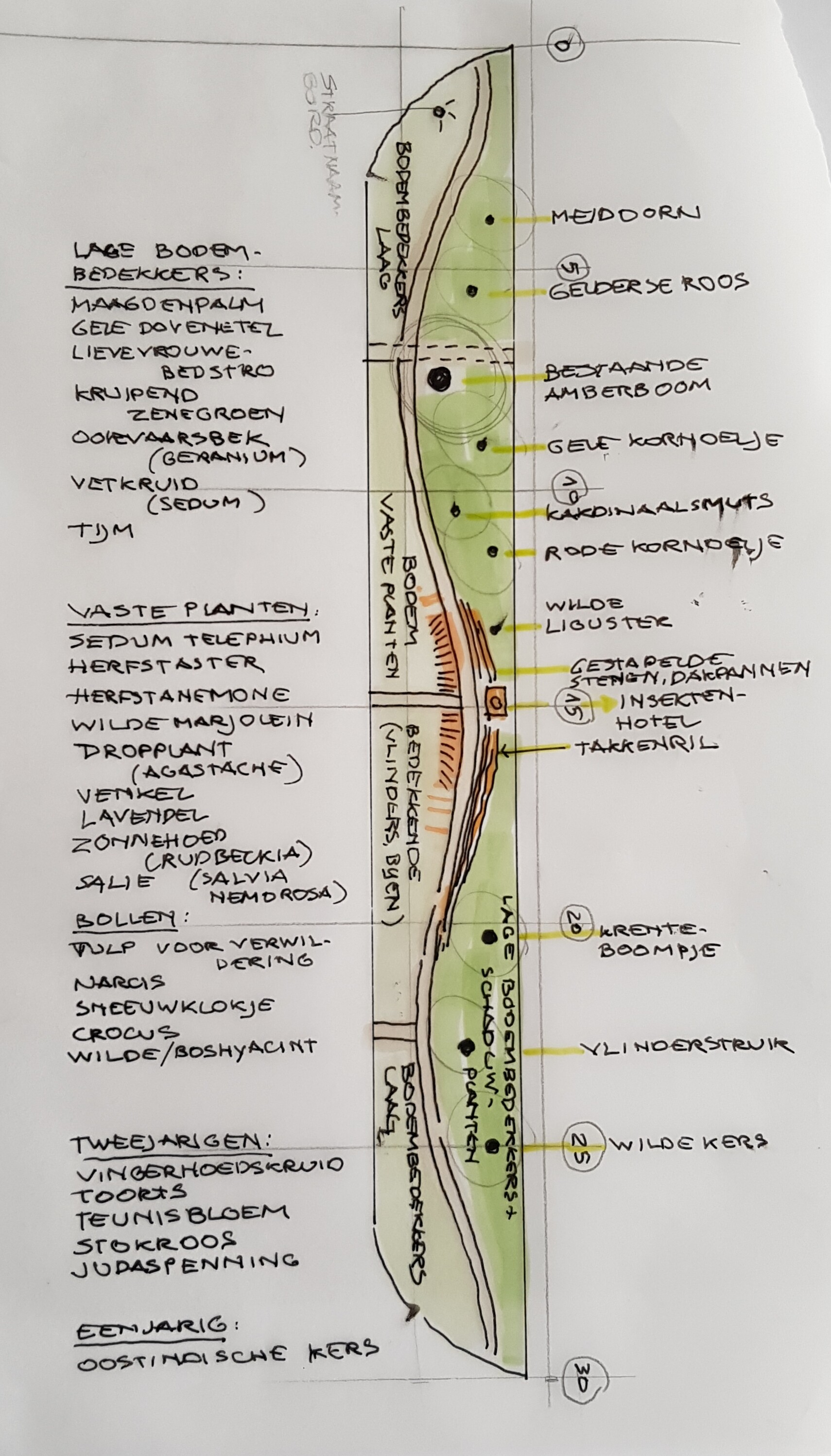 - mooie planten en struiken om het hele jaar een mooi aangezicht te hebben, alsmede de vlinders, bijen en overige insecten te voorzien in hun behoeften.