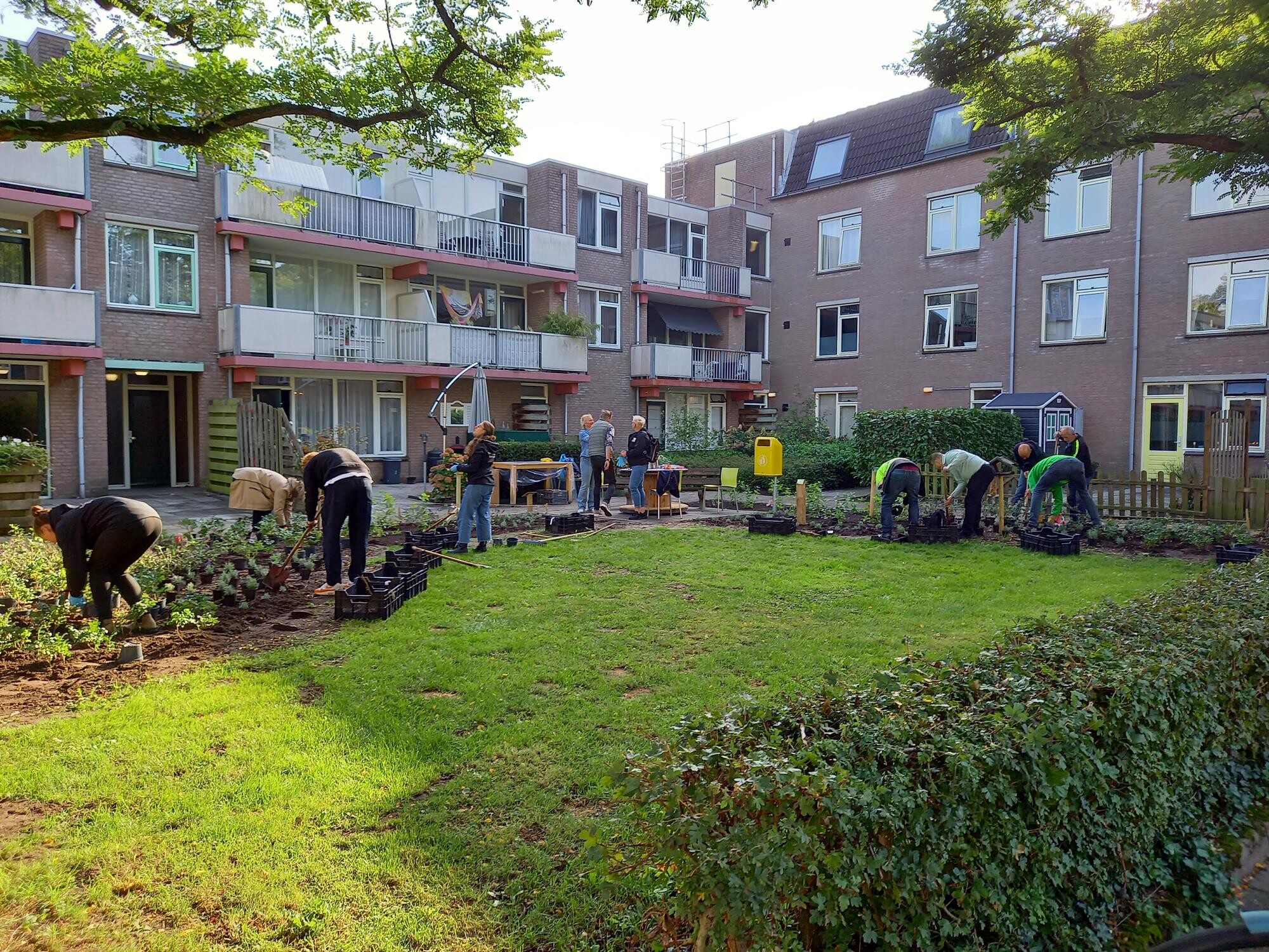 Openbaar stukje groen ombouwen naar een gezellige ontmoetingsplek en waardevol groen/bloemen toevoegen