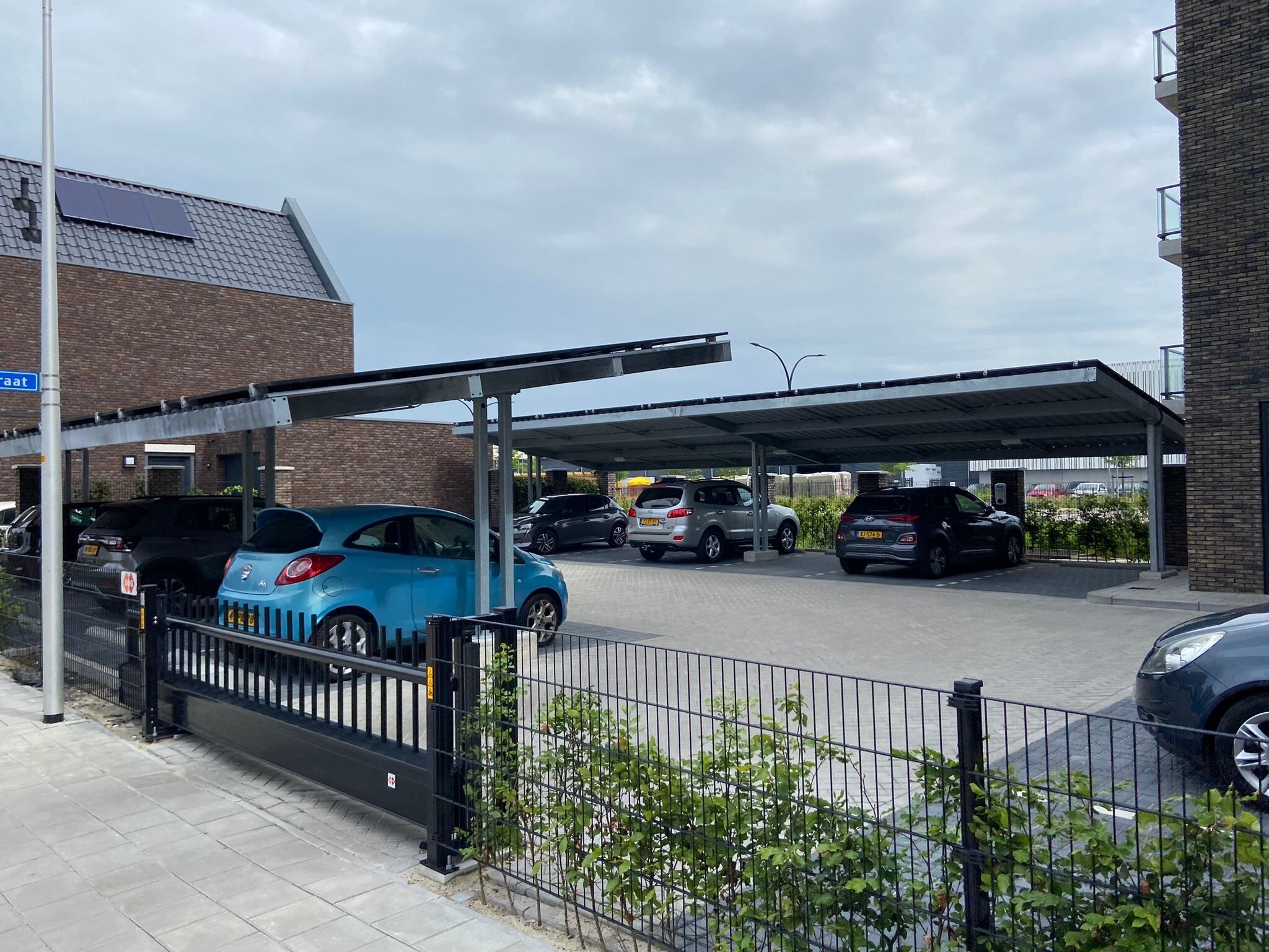 Overdek de parkeerplaatsen met een carpoort, niet zomaar een carpoort, maar eentje met een groendak en/of zonnepanelen. Zo staat je auto droog, schoon, warmt niet op, niet krabben + dragen we bij aan de biodiversiteit en energie armoede. Een win-win-win. Misschien is het zelfs mogelijk om de energie te gebruiken voor een elektrische laadpaal. De carpoort ligt ideaal op het zuiden.