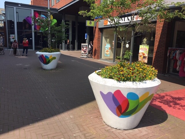 Heeft u het al gezien? De standaard grijze bloembakken van de gemeente in het Winkelcentrum zijn geadopteerd door de Winkeliersvereniging. Na overleg met de wijkbeheerder heeft een kunstenaar de bakken opgefleurd met het logo van de Winkeliersvereniging en onderhoudt de vereniging nu zelf de plantenbakken. Afspraken hierover zijn vastgelegd in een op maat gemaakte adoptieovereenkomst.