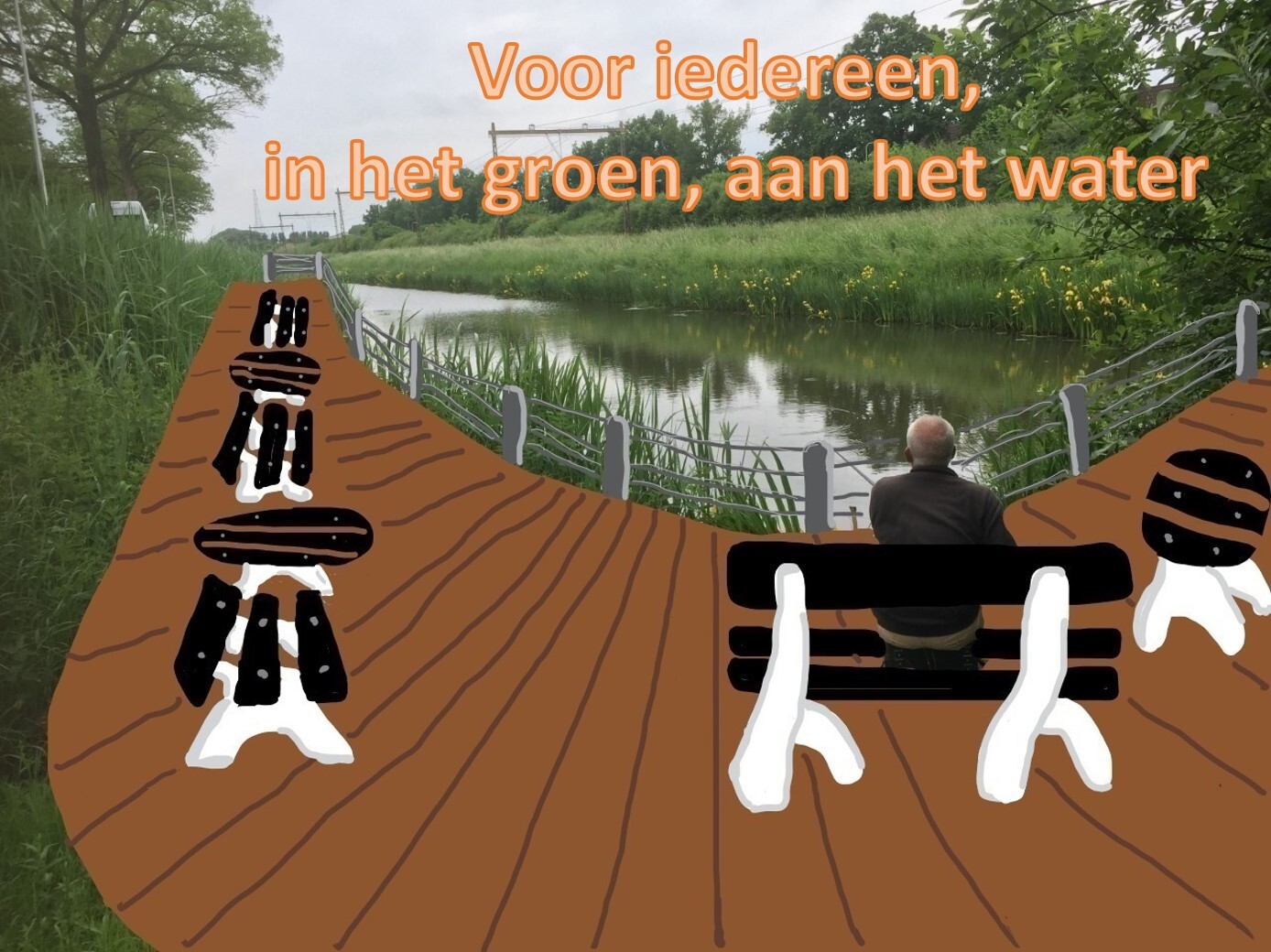 Met een groepje bewoners zijn we tot het idee voor een groene ontmoetingssteiger gekomen.