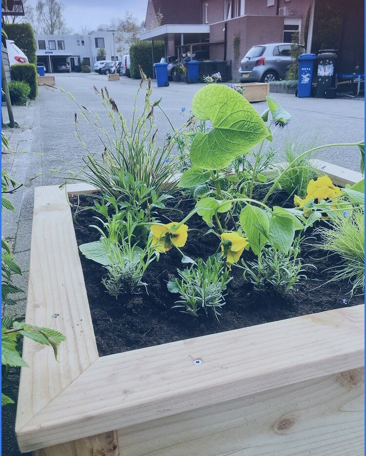 Wijkregisseur John de Vries van Stadsdeel Zuid, bedankt voor alle inspanningen. De bloembakken staan er. De straat is er iets veilger en kindvriendelijker op geworden, doordat automobilisten niet meer een lange brede straat voor zich hebben liggen.