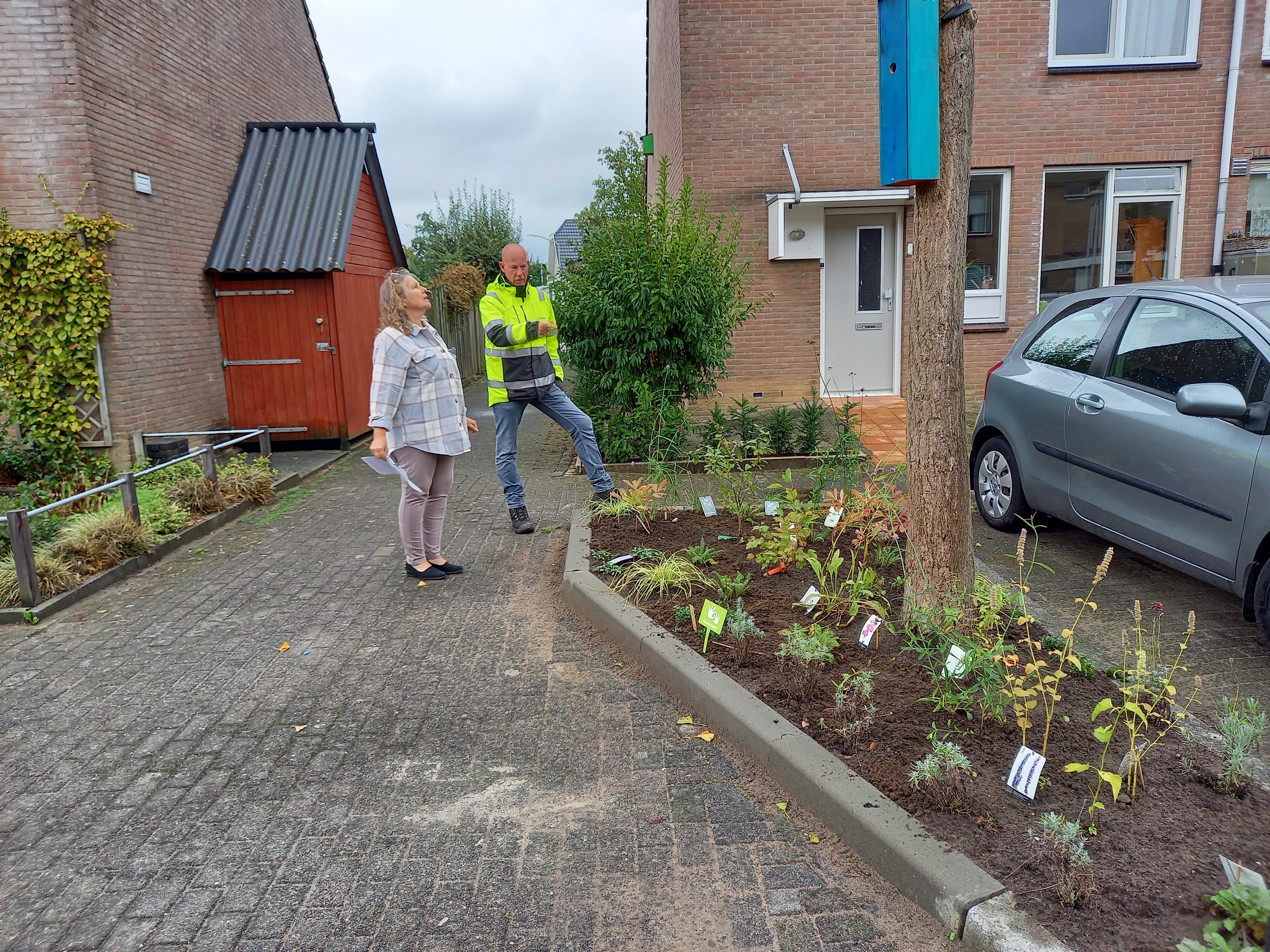 Vergroening van snelheidsbeperkende elementen in de straat van Maanenware!